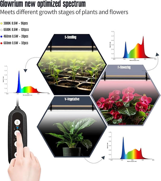 GLOWRIUM Grow Lights for Indoor Plants, 36W Vertical Plant Grow Lights with Auto-Timer, Full Spectrum LED Standing Plant Grow Light, 3 Light Modes, 6-Level Dimmable (60in)