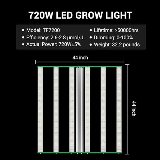 RDJ Bouns 720W LED Grow Light for 4x4/5x5 Grow Tent, Wide Body 6 Bar 100V-277V LM281B+ and EPI Diodes, Full Spectrum, Overall Size 44" x 44", Daisy Chain Dimmable, Perfect for Indoor Garden