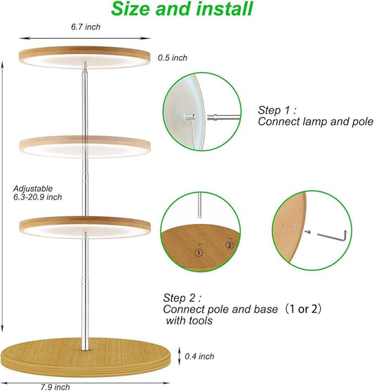 Plant Grow Light for Indoor Plant,Bamboo Mini LED Grow Light Garden,Height Adjustable,Automatic Timer with 8/12/16 Hours