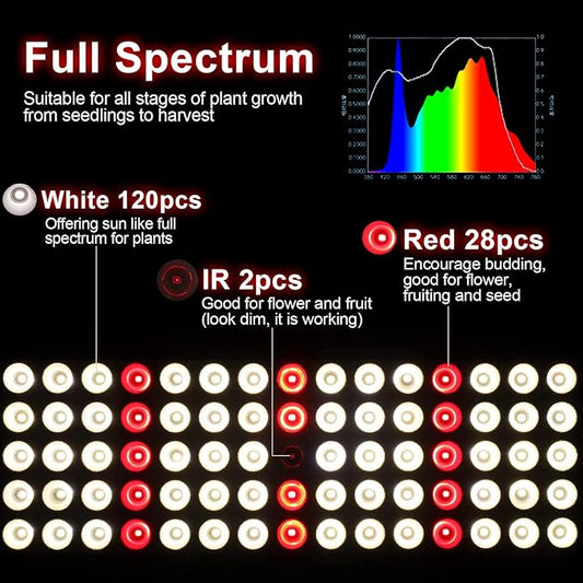 JCBritw 100W LED Grow Light Panel,Adjustable Free Standing Plant Light, White with IR Full Spectrum Grow Lamp on Stand for Indoor Plants Seed Starting, Seedlings, Veg, Flower
