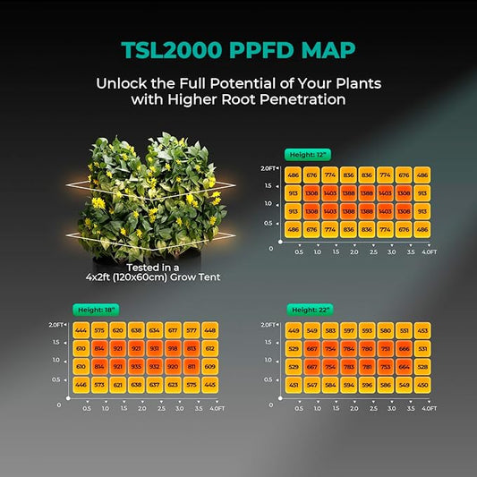 MARS HYDRO SP3000 2x4 Grow Lights for Indoor Plants,Greenhouse Lights,Full Spectrum,Dimmable,Remote WiFi App Control,Daisy Chain Light for Greenhouse Farming Seedling Veg and Bloom for 4x2 Grow Tent