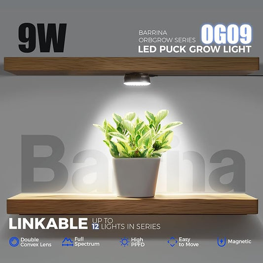Barrina Orbgrow OG09 Puck LED Grow Light, 5000K 9W(135 Watt Equiv), Plant Lights for Indoor Plants Full Spectrum, Magnetic & Linkable, Small Grow lamp, Perfect for Plant Shelf, 1 Pack, Black