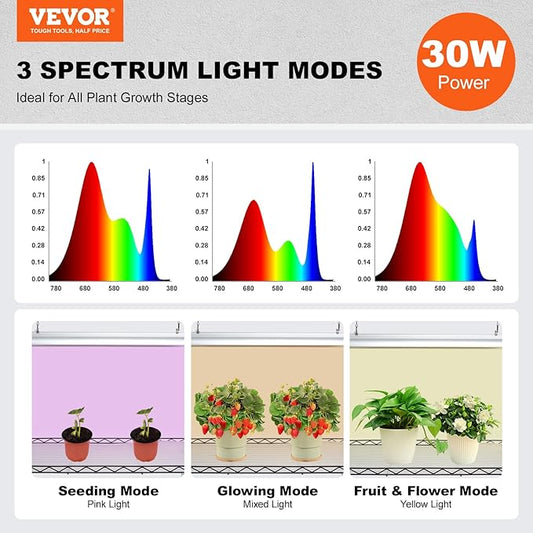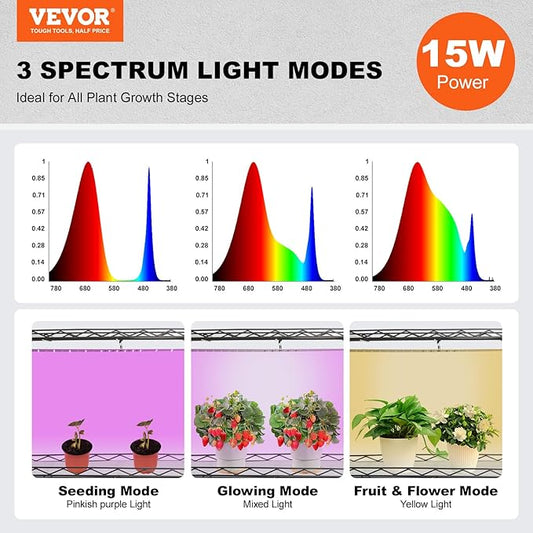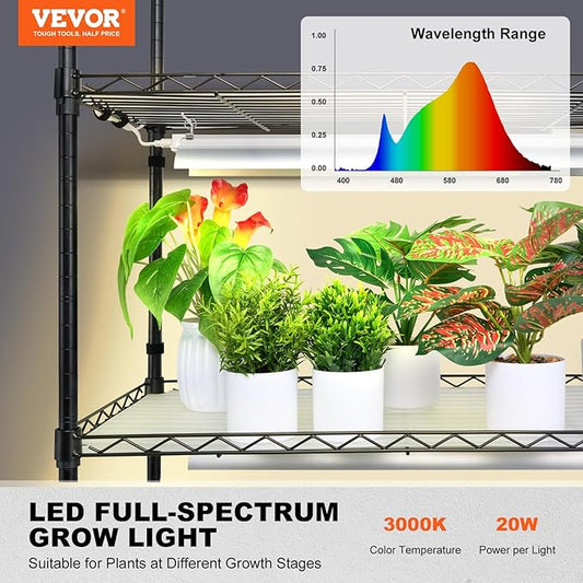 VEVOR Plant Stand with Grow Light, 4-Tier Plant Shelf with 45W Full Spectrum Grow Light, 3 Mode Plant Light with Timer and Wheel for Seed Starting, Metal Grow Light Shelf for Indoor Plants