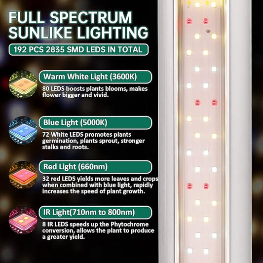 SZHLUX Grow Light 4FT 140W (2×70W, 800W Equivalent) Super Bright Full Spectrum Sunlight Plant Light, LED Grow Light Strips, Linkable Growing Lamp for Indoor Plants