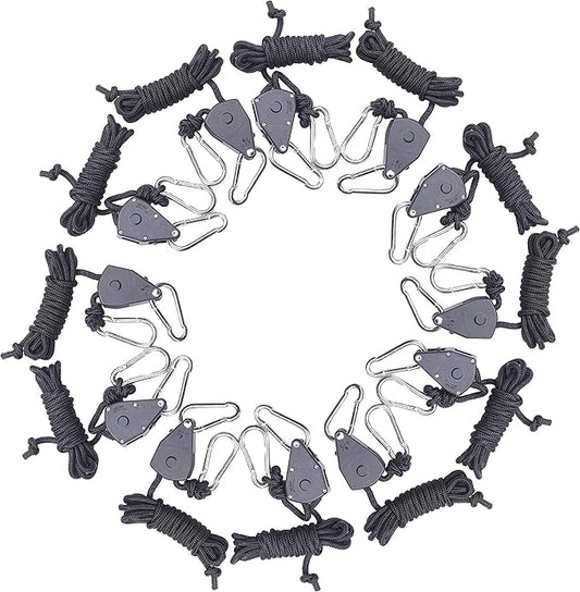 Grow Light Rope Hanger ,1/8" 8-Feet Long Heavy Duty Adjustable Rope Clip Hanger, Adjustable Rope Ratchet Hangers 150 Lbs per Pair (12 Pairs)