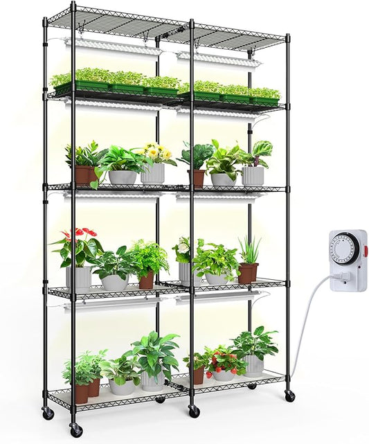 Barrina CX1 Plant Stand with Grow Lights for Indoor Plants, 5-Tier Large Tall Metal Plant Shelf with 1.6FT 20W(Per Light) Full Spectrum Plant Lights for Indoor Growing, 47x13.8x70.9IN