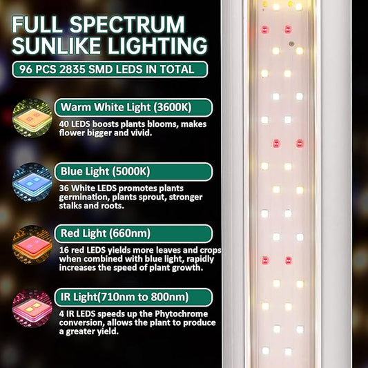 SZHLUX LED Grow Light 2FT Full Spectrum 2 Pack 80W (2×40W, 600W Equivalent) Sunlight Plant Light for Indoor Plants, Super Bright Grow Light Strips, Linkable Growing Light Fixture