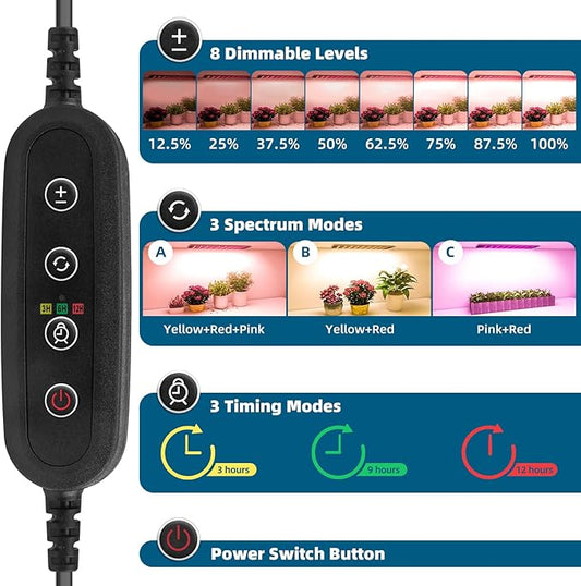 LED Grow Lights 16W Full Spectrum Integrated Growing Lamp Lighting Fixtures with High PPFD for Greenhouse Hydroponic Indoor Plant Seedling Veg and Flower