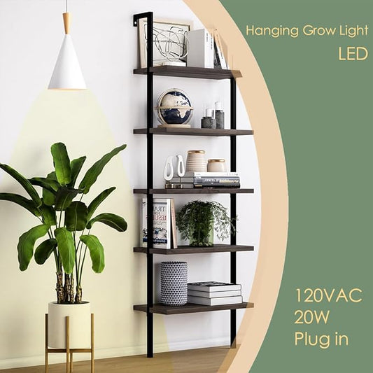 Hanging Grow Light, 20W Full Spectrum Pendant Grow Lights 15FT Power Cord, Decorative Grow Light for Indoor Plants, Flowers, Garden (Ceiling Mounted Hooks&Wall Mounted Bracket Included
