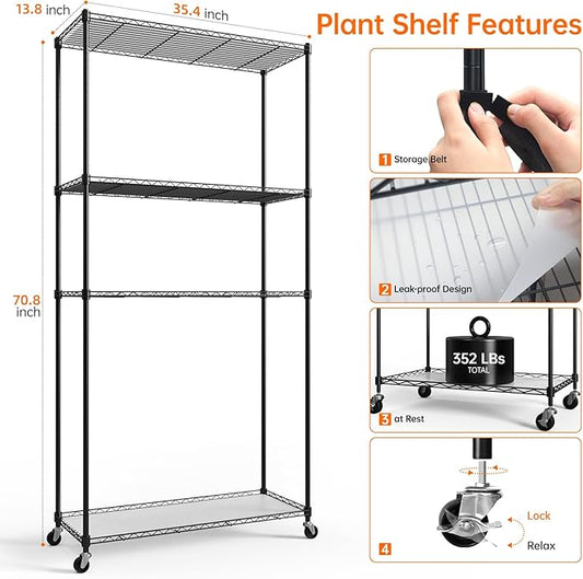 Plant Shelf with Grow Light with Timer, Tall Plant Stand with Adjustable Rack and Wheels, 6 Pack T5 3FT Full Spectrum Grow Lights for Indoor Plants, Seed Starting, Seed Tray, 35.4"x13.8"x70.8"