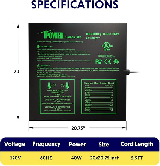 iPower 20" x 20.75" Seedling Heat Mat, Waterproof Durable UL&MET Certified Heating Pad for Indoor Gardening, Hydroponic Plant Germination