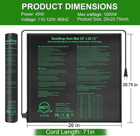 Seedfactor MET Certified Seedling Heat Mat with 50℉~108℉ Digital Thermostat Controller for Seed Germination (20" x 20")