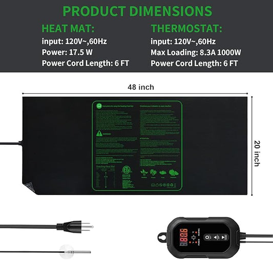 48"x20" Seedling Heat Mat with Digital Thermostat Combo Set,ETL Certified and Durable Waterproof Warm Hydroponic Heat Mat for Germination,Indoor Gardening,Brewing and Greenhouses