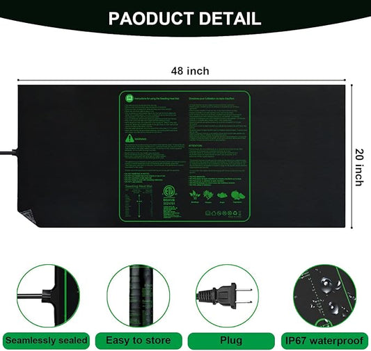 Upgrade 48"x20" Durable Waterproof Seedling Heat Mat with ETL Certified, Warm Hydroponic Heating Pad for Germination,Indoor Plant Gardening and Cutting, Brewing and Seed Starting Greenhouse