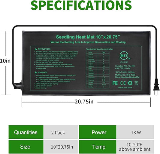 Seedling Heat Mat, 10"x 20.75" Plant Heating Pad for Home Gardening Seed Starting, MET Certified Waterproof Durable Germination Station Heat Mat