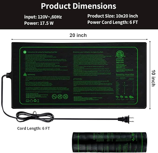 Upgrade 20" x 10" Durable Waterproof Seedling Heat Mat with ETL Certified, Warm Hydroponic Heating Pad for Germination,Indoor Plant Gardening and Cutting, Brewing and Seed Starting Greenhouse