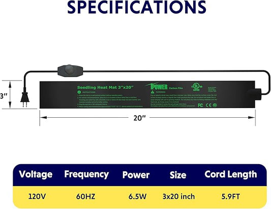 iPower Durable Seedling Heat Mat Warm 3" x 20" - 2 Pack with Temperature Adjustable Knob Hydroponic Heating Pad Waterproof for Seed Starting Greenhouse and Germination