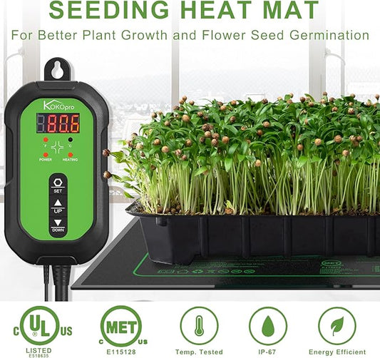 10"x 20" Seedling Heat Mat and Digital Thermostat Combo Set - KOKOPRO Warm Hydroponic Heating Pad for Seed Germination Indoor Gardening Greenhouse for Reptiles Seedlings Incubation Fermentation