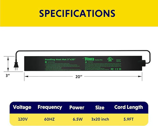 iPower Durable Seedling Heat Mat Warm 3" x 20" Hydroponic Heating Pad Waterproof for Seed Starting Greenhouse and Germination