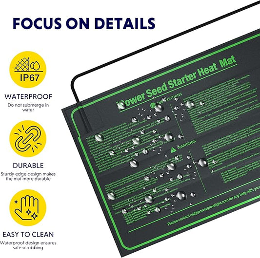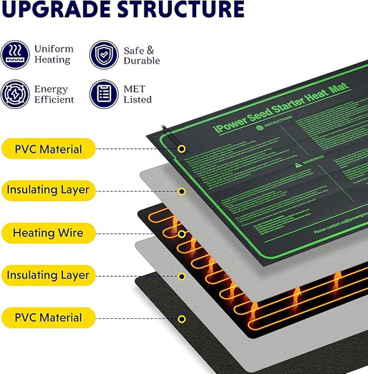 iPower Seeding Heat Mat Upgraded Carbon Film Indoor Warm Hydroponic Plant Germination Starting Pad Durable Waterproof, 20" x 20.75", Black