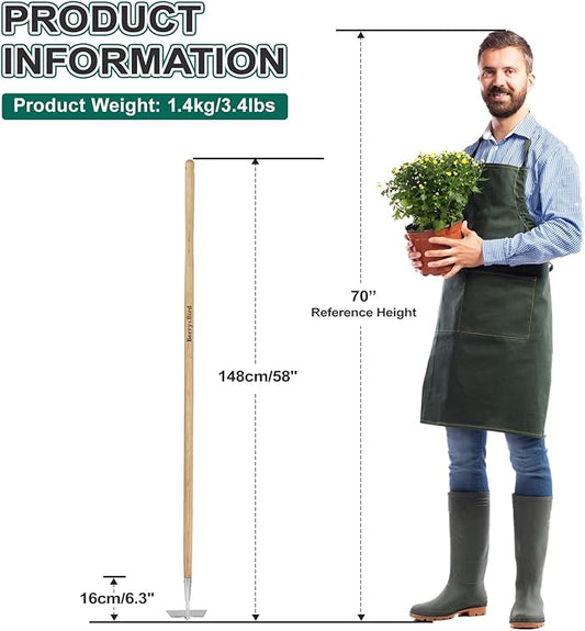 Berry&Bird Flat Edge Garden Hoe, 58'' Hoes Garden Tool with Long Wood Handle, Stainless Steel Weeding Hoe, Heavy Duty Weeder Hoe Tool for Gardening Digging Soil Loosening, Edging & Cultivating