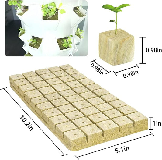 Legigo 1 Inch Rockwool Cubes Seed Starter Plugs for Hydroponics, RockWool Planting Grow Cubes for Hydroponic Tower Garden Soilless Cultivation Plants Germination Cutting Clone (6 Sheet, 300 Plugs)