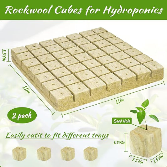 Halatool 48 x 2-Inch Rockwool Cubes & 48 x 3-Inch Net Cups - Hydroponics Starter Kit for Plants Cloning, Seed Starting, and Patio Gardening - Durable, Effective, Great Gift Option