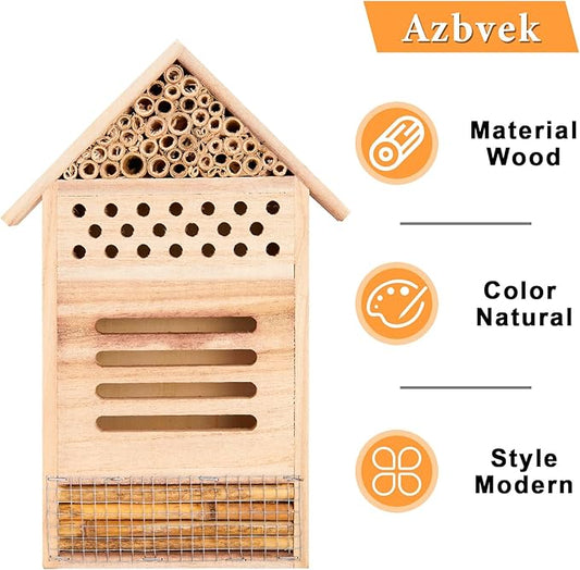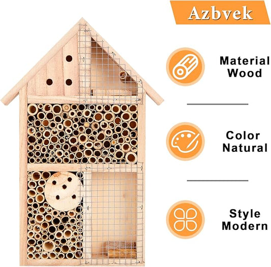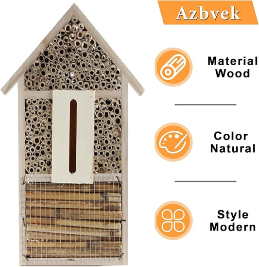 Wooden Bee House-Mason Bee House for Garden,Handmade Natural Wooden Bee Hive for Ladybugs, Lacewings,Butterfly,Bug,Outdoor Bee Hotel