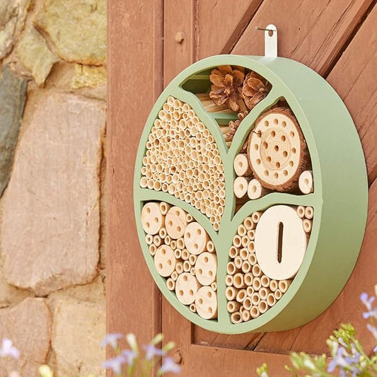 Wooden Multi Habitat Insect House Outdoor Garden Decorative Wooden Insect Hotels for Bee, Butterfly and Beetle Tree of Life Light Green Bee House