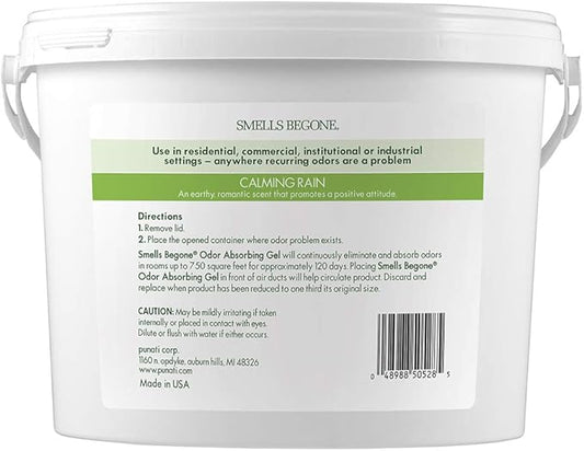 SMELLS BEGONE 1-Gallon Odor Absorber Gel - Air Freshener & Odor Eliminator for Homes, Garages & Commercial Buildings - Industrial Size - Calming Rain Scent