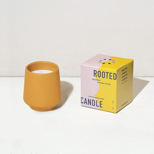 Modern Sprout Rooted Candle - 2 in 1 Cedarwood Scented & Soy Candle with Seeds That Grows into Lavender Plant - 6 oz w/ 42 hr Burn time in Matte Glaze Ceramic Vessel Ideal for Indoor Herb Garden