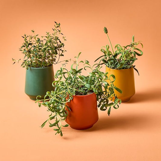 Modern Sprout Rooted Candle (Pack of 3) - 2 in 1 Scented Candles with Seeds That Grows into Plants - 6 oz Soy Candle with 42 hr Burn time in Matte Glaze Ceramic Vessel - Rosemary, Thyme, & Lavender
