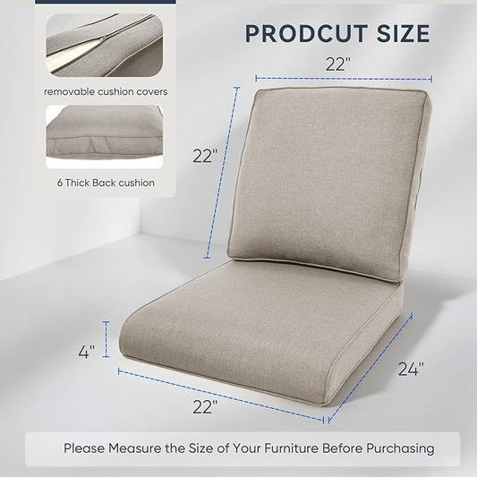 Outdoor Rattan Chair Cushions 2 Packs - Outside Durable Thick Replacement Back and Seat Cushion 22x24 with Zipper Cover for Patio Glider Rocking Chairs Loveseat Couch – Beige/Regular