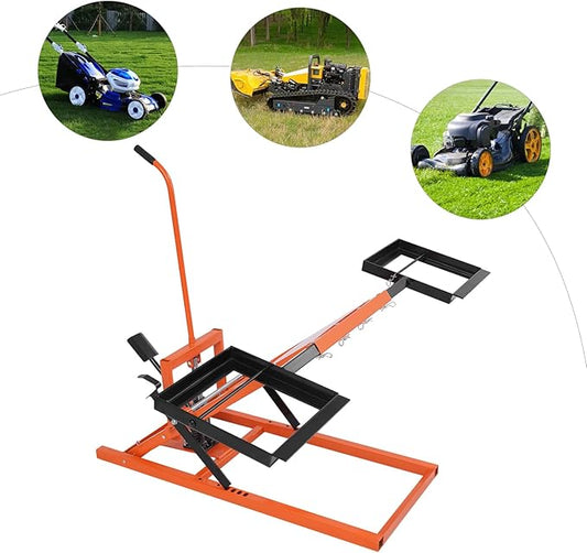 Lawn Mower Lift with Hydraulic Jack 500 Lbs Weight Capacity, Solid Carbon Steel Lawn Mower Lift, Adjustable Wheel Span Lawn Lifter for Garden Tractors and Lawn Mowers (Orange+ Black)