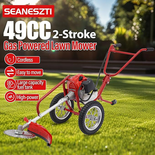 49CC 2-Stroke Gas Powered Lawn Mower, Hand Push Lawn Mower Trimmer, Brush Mower Gasoline Brush Broom Sweeping Machine, Gas Brush Cutter String Trimmer for Yard