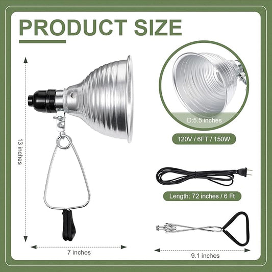 Macarrie 12 Pack Clamp Lamp Light with Aluminum Reflector, 6ft SPT-2 18awg Cord and Adjustable Stand Fixture E26 Socket, up to 150 Watt, No Bulb(5.5 Inch)