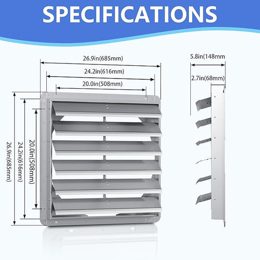 20 Inch Galvanized Shutter Exhaust Louver Vent, Automatic Gravity Shutter Louver Vent for Home Attics, Workshops, Barn, Greenhouse (Motor&Blades are not Included)