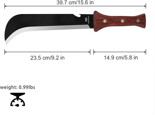 Billhook Sickle Machetes, 15.6" Sharp Machete for Yard Work, Machete for Cutting Trees Heavy Duty, Gardening Machetes with No-Slip Wood Handle and Nylon Sheath, Sickle Knife Machetee for Grass