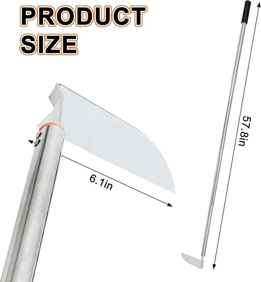 Japanese Weeding Sickle Hoe,57.8''Stainless Steel Standing Weeding Tool,Angular Weed Sickle Garden Tool with Long Handle Adjustable,Japanese Garden Tools for Weeding and Planting