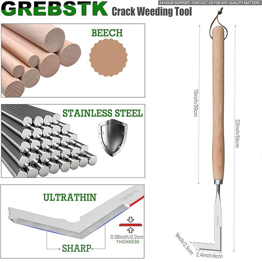 GREBSTK Crack Weeder Crevice Weeding Tool Stainless Steel Manual Weeder Beech Handle Gardening Tool, 22 inch