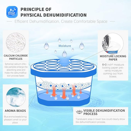 Vacplus Moisture Absorbers 12 Pack, 10.5 Oz, Humidity Absorber Boxes Attracts Extra Moisture from Your Bathroom, Closet, Kitchen, Dehumidifier for Closet (Fragrance Free), Blue