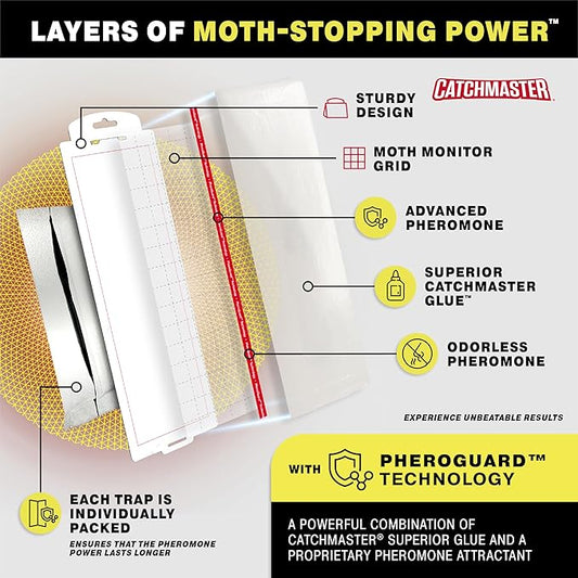 Catchmaster Pantry Moth Traps with Premium PheroGuard Technology – XL, Extra-Strength Glue – Odorless, Kids and Pet Safe – Traps & Eliminates Moths – Protects Pantry, Cabinets & Food Storage – 6-Pack