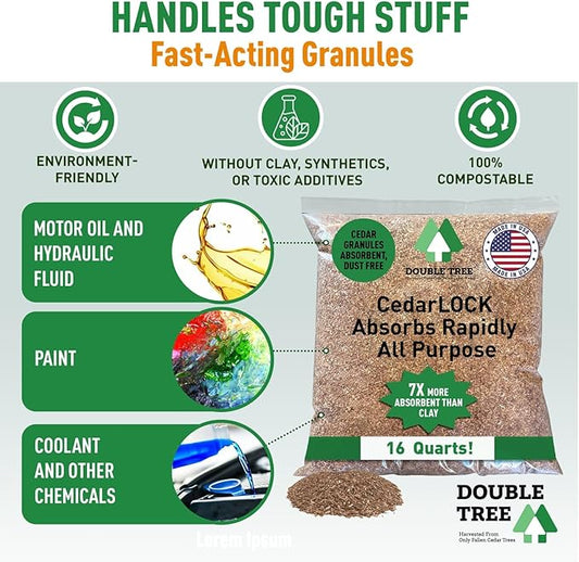 CedarLock Oil Absorbent – Nature’s Heavy-Duty Spill Solution Made from 100% Pure Incense Cedar, Oil Spill Kit Granules, Organic Granules, All-Purpose Oil Absorbent - (2 Bags 32 Quarts)