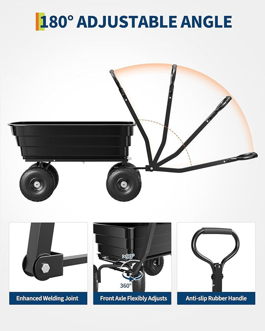 Poly Dump Cart - Heavy Duty 1200lbs Garden Cart with Quick-Release Dumping & No-Flat 13" Tires, Utility Wagon for Yard Work, Landscaping, Gardening