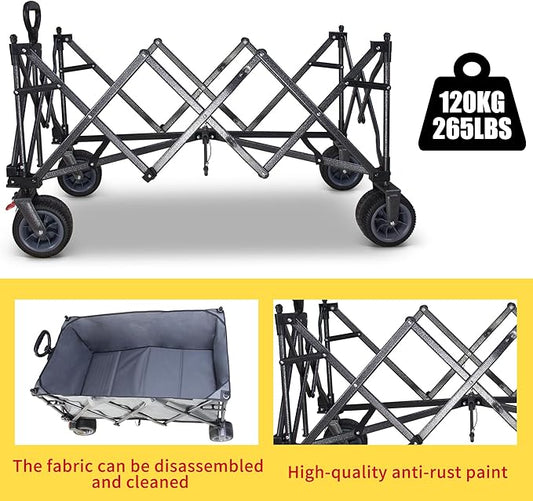 TMZ Collapsible Wagon 445L Extra Large Outdoor Utility Cart, Heavy Duty Carts Foldable with All-Terrain Big Wheels, Canopy and Brakes, Utility Beach Wagon for Outdoor Garden (Gray)
