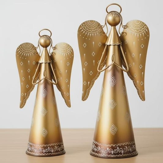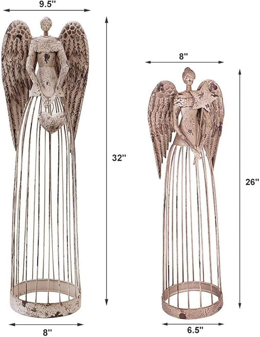 Linfevisi Garden Angel Statue Decor Rustic Metal Angel Sculpture Garden Yard Art Heavenly Home Decor Antiqued Accent Housewarming Gift 2 Pack (Star & Heart)