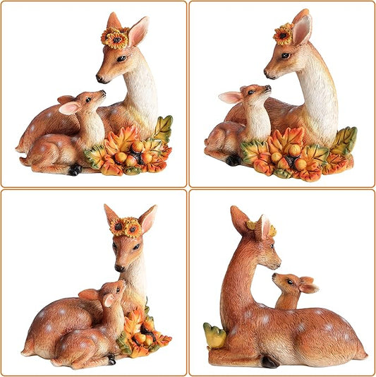 Garden Deer Statue Fall Animals Decor Resin Harvest Mother and Baby Deer Acorn with Maple Leaves Figurines Autumn Thanksgiving Indoor Outdoor Decorations Patio Yard Lawn Ornaments