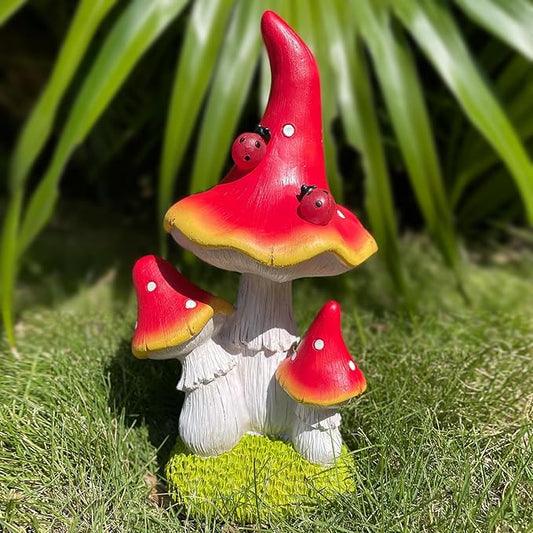 COWOS Solar Mushroom Garden Statue, Fairy Garden Accessories Outdoor Statues, Mushroom House Decor, 3 Mushrooms Head for Patio Yard Lawn Porch Outdoor Decor