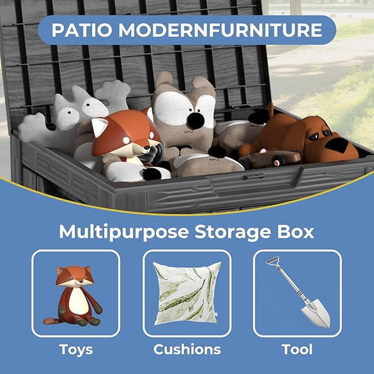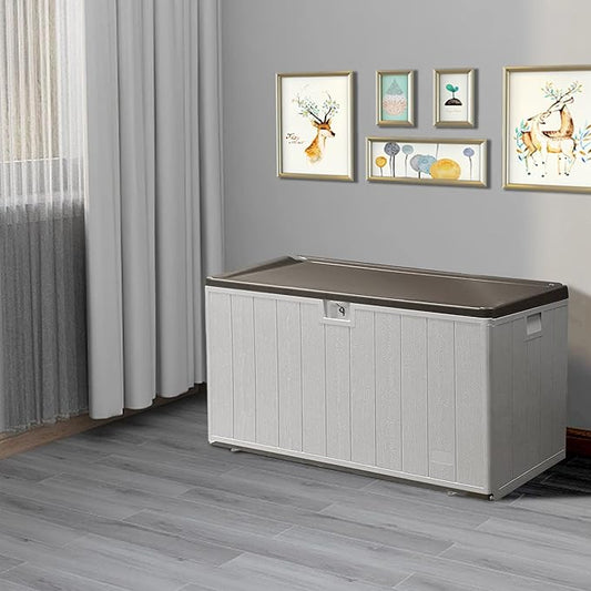 320 Gallon Lockable Resin Deck Box, Waterproof & UV-Resistant Outdoor Storage Box for Outdoor Cushion Storage, Garden Tools & Pool Accessories Storage, Gray