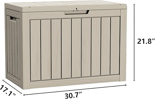 31 Gallon Waterproof Outdoor Storage Box,Resin Deck Box,Lockable Outside Storage Box Container for Patio Furniure,Garden,Pool Tools (31 Gallon,Grey)